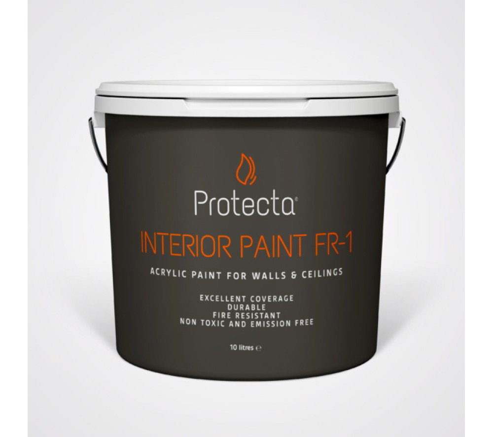 Protecta Interior Paint FR-1, yangının yayılmasını önleyen özel özelliklere sahip ve insanların sağlığını zararlı kimyasallardan koruyan dekoratif bir boyadır. Bu boyanın formülü en yüksek spesifikasyona göre tasarlanmıştır ve dayanıklı iç mekan akrilik boyası olarak benzersiz renk yoğunluğu sunar.