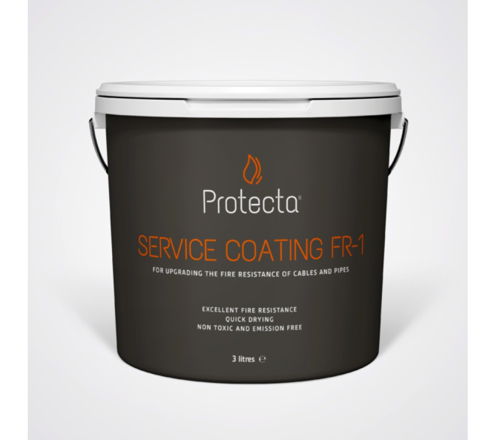 Protecta Service Coating FR-1, yanıcı kabloları yanmaz hale getirerek güçlü bir yangın dayanıklılığı sağlar. Bu ürün aynı zamanda daha yüksek yangın dayanıklılığı için Protecta FR board ile birlikte kullanılabilir.